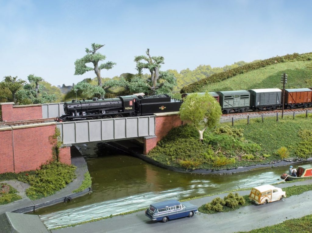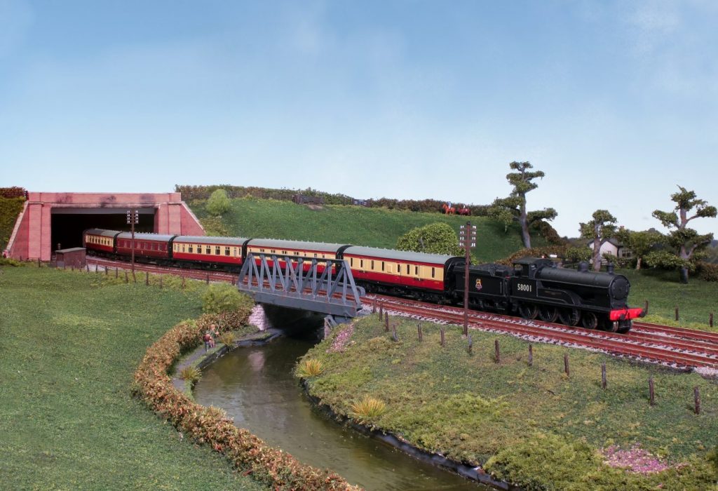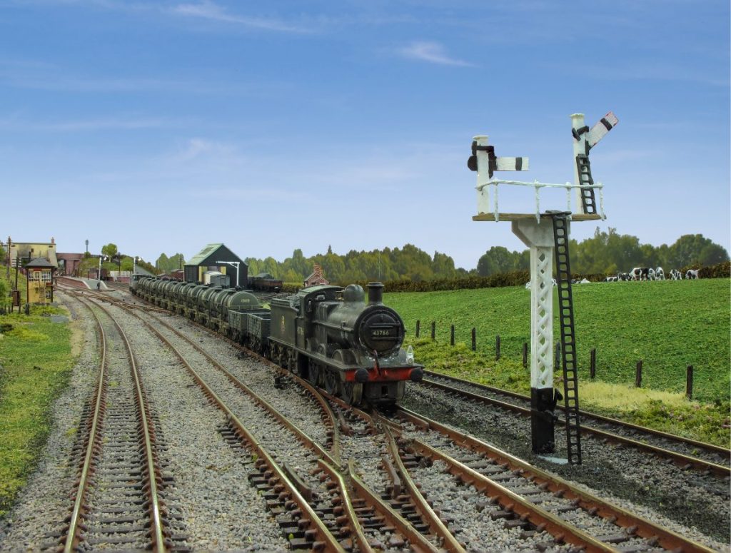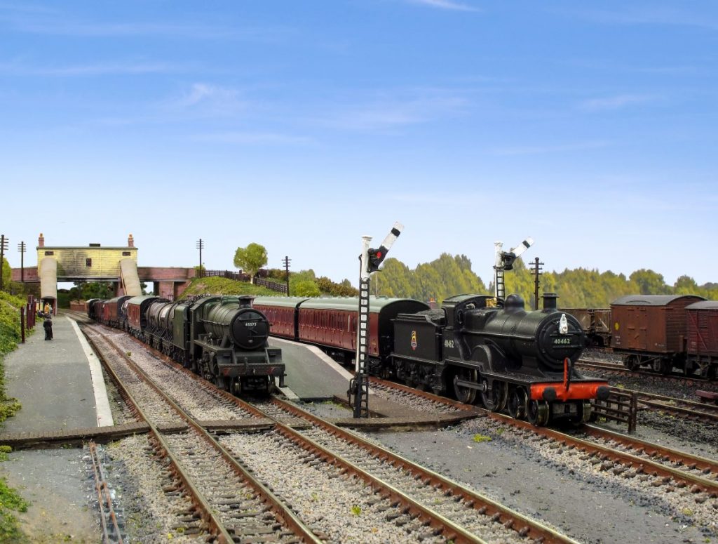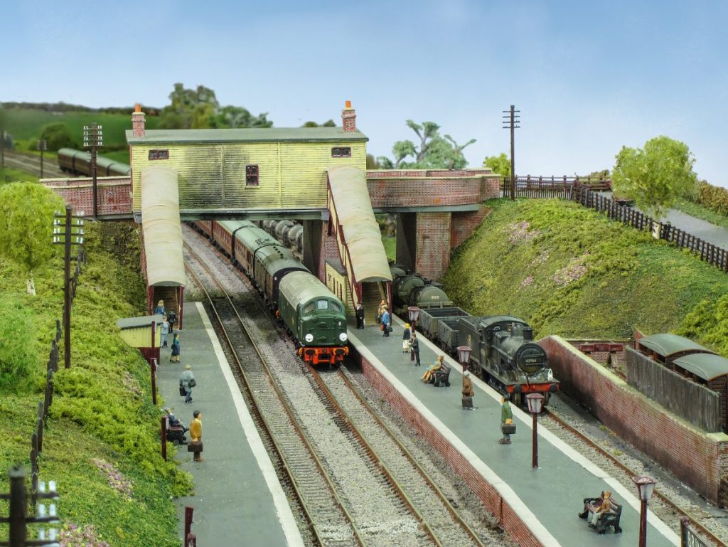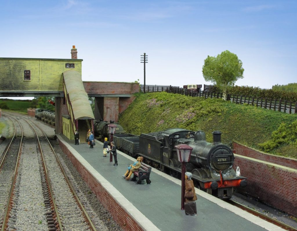 This N gauge layout is based on Brinklow Station, which is part of the Trent Valley Line between Rugby and Stafford.  The station opened in 1847 as Stretton and became Brinklow in 1870.  There were only three sets of tracks running through Brinklow because of the close proximity of the canal.  Brinklow survived until 1957 when it was closed.  The goods yard continued in use until 1961.