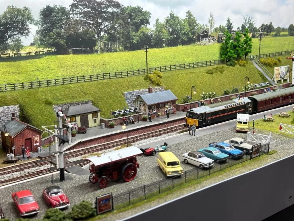 The goods loop has been reinstated as a passing loop with signals and a signal box added. As a heritage line an eclectic mix of steam and diesel locomotives can be seen passing through Eardley Mor with both passenger and freight traffic.