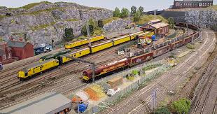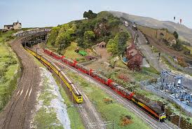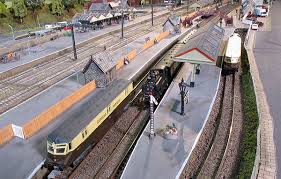 Stations and sidings at different heights enable local stopping trains to be passed by through express passenger and goods trains. The principal track of the layout is modern image, with over head catenaries, whilst the outer circuits is a dedicated heritage line, allowing historic and preserved trains to run, including steam hauled. The emphasis is on entertaining exhibition visitors rather than ‘rivet counters’ and so a liberal approach to a constant supply of stable and visiting trains from different regions and eras is encouraged.