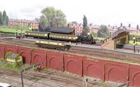 Fredstone Lane is a modern fictitious layout built by members of the Alsager Railway Association. The track layout comprises inner and outer circuits at different levels with cross-overs and reversing loops, with separate double tracks for passenger and freight. At one end of the layout maintenance and freight marshalling yards offer shunting opportunities.