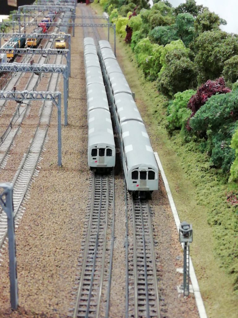 Hatch End is based on the real location on the West Coast main line, north of London Euston during the 1980s with the four main lines of British Rail under the AC wires, plus two Watford lines of the Underground makes for plenty of movement. Look out for ATP-P on a special test run……….