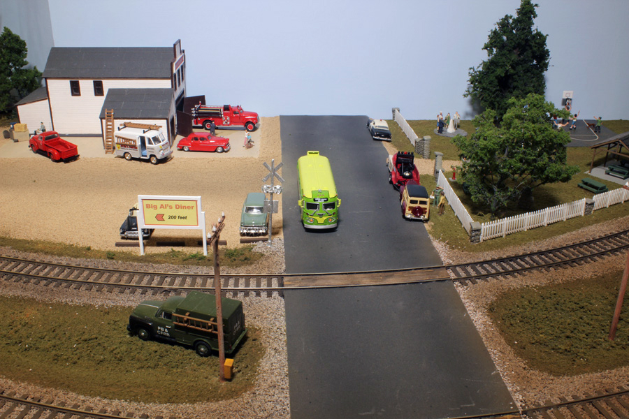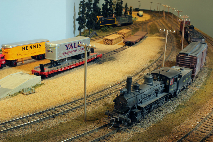 Pine Bluffs Freight Yard is one element of a modular layout from the American Section of Alton Model Railway Group. The Section created the fictitious Pine Bluffs and cedar Falls Railroad in 1993 and has been exhibiting ‘Pine Bluffs Depot’ since 1995. The new Freight Yard layout continues on from the Depot (the road bridge being the division between the two elements). Modelled in HO scale (3.5mm to 1ft), the ‘Freight Yard’ layout is designed to combine continuous ‘train watching’, including ‘passing loop’ operations, with the variety of small freight yard switching.